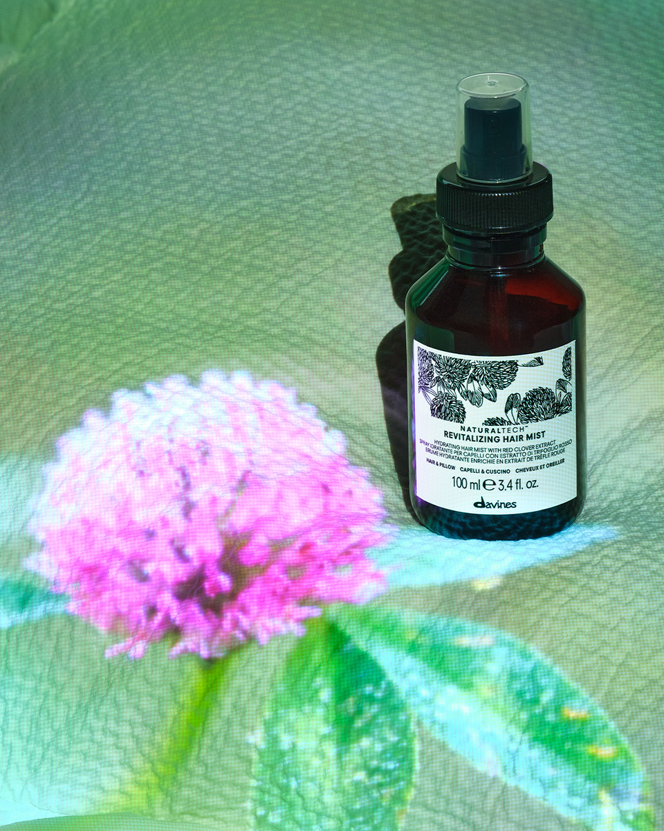 Disponibile in esclusiva nei saloni Davines aderenti alla campagna Tuteliamo la Terra, Revitalising Hair & Pillow Mist è stato sviluppato utilizzando estratto di trifoglio rosso da
