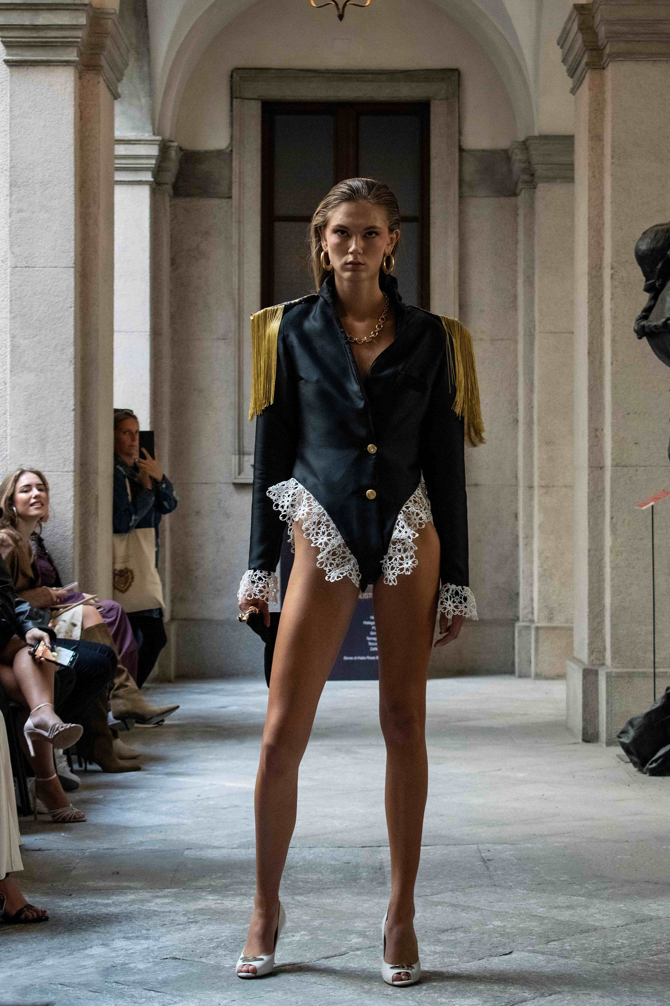 MP Moda. Gli abiti, caratterizzati da linee asimmetriche e dettagli innovativi, hanno reso visibile il linguaggio di sperimentazione e libertà del progetto.’48 Break to Be ha voluto richiamare lo